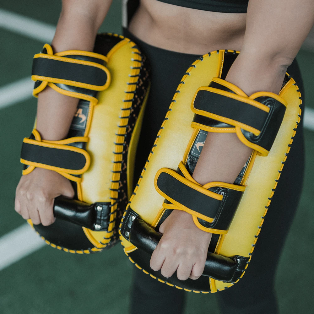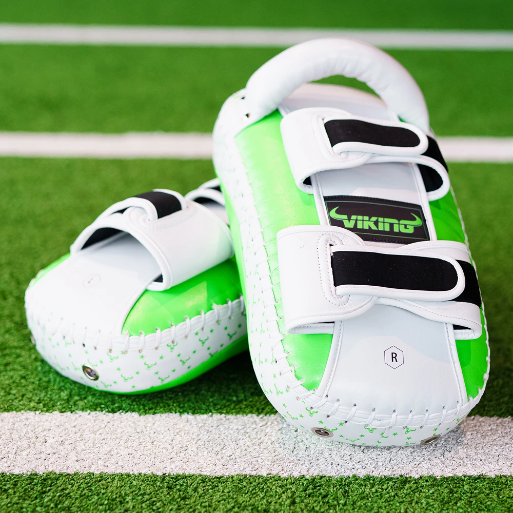 Introducing the Viking Diablo Curved Pro Leather Thai Pads, a premium product designed to elevate your training experience. These Thai pads are crafted from the finest quality cowhide leather, ensuring durability and longevity.